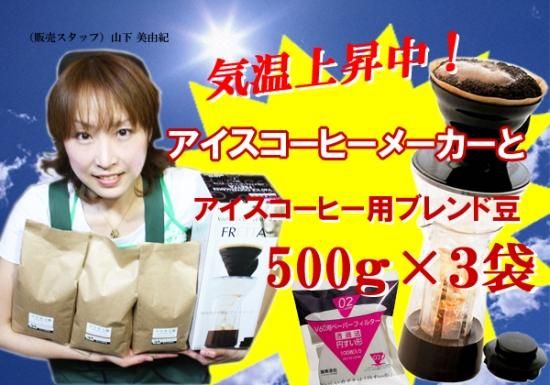 アイスコーヒー用ブレンド豆500g×3袋(グラス150杯分)に+ハリオV60専用ペーパーフィルター100枚プレゼント...